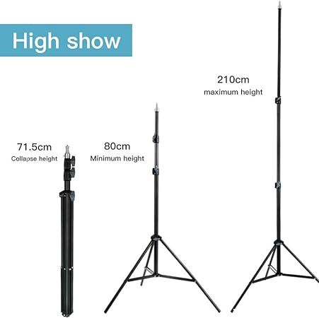 Adjustable Height that can Easily raise or lower your lights from 75cm to a maximum height of 210cm to achieve the perfect lighting angle for your shoot