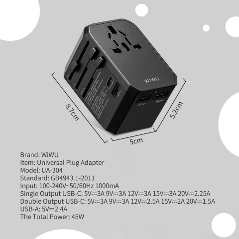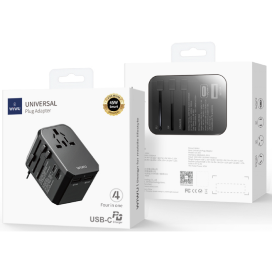 WIWU 4 in 1 Universal PD45 W Plug Travel Adapter (UA-304) -Black